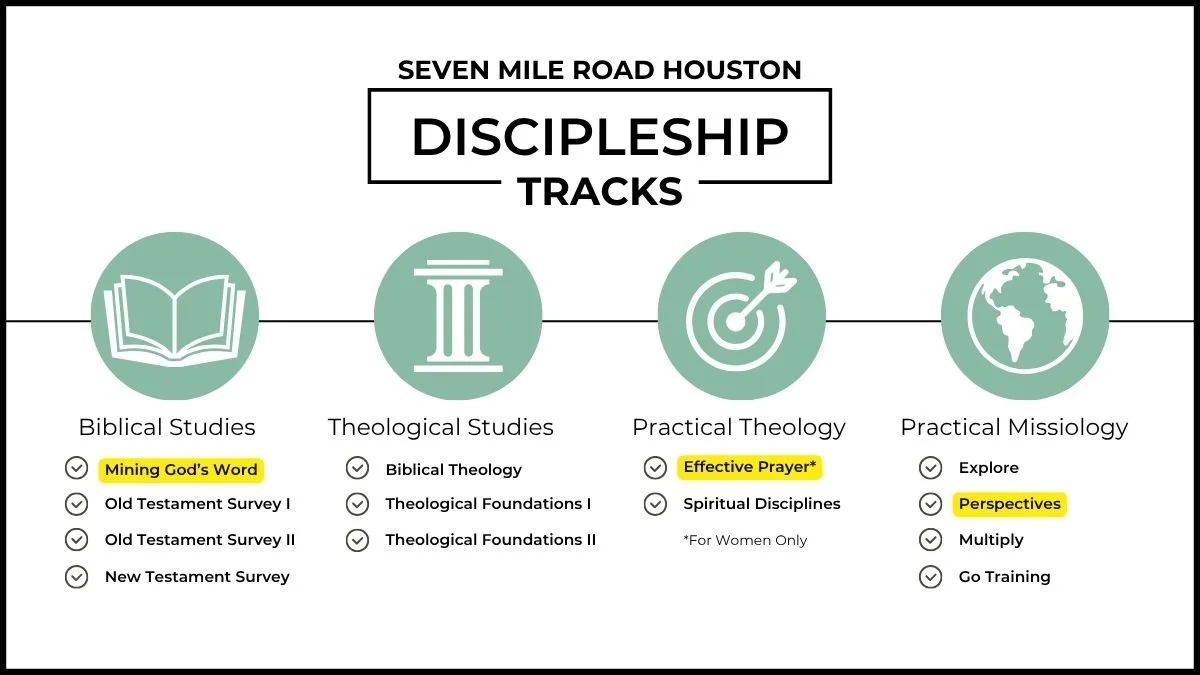 In this Discipleship Track course, we will learn how to study the Bible for all it is worth. Our sessions will equip us to study scripture using the inductive method, producing deep enjoyment of all God has for us in his Word!